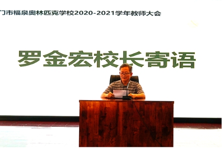 會(huì)議開(kāi)始由羅金宏校長(zhǎng)致辭。他總結(jié)了我校在開(kāi)展特色教育方面取得的辦學(xué)成果。十六年來(lái),學(xué)校堅(jiān)持走教育教學(xué)改革之路,在各項(xiàng)比賽、考試中獲得優(yōu)異成績(jī),贏得了上級(jí)領(lǐng)導(dǎo)、家長(zhǎng)以及社會(huì)的充分肯定,成為江門(mén)地區(qū)民辦學(xué)校的標(biāo)桿。羅校以“一個(gè)牢記”和“一個(gè)堅(jiān)持”寄語(yǔ)老師們要牢記立德樹(shù)人的初心,堅(jiān)持教書(shū)育人的使命,在三尺講臺(tái)上埋頭苦干, 追求自己的事業(yè)。