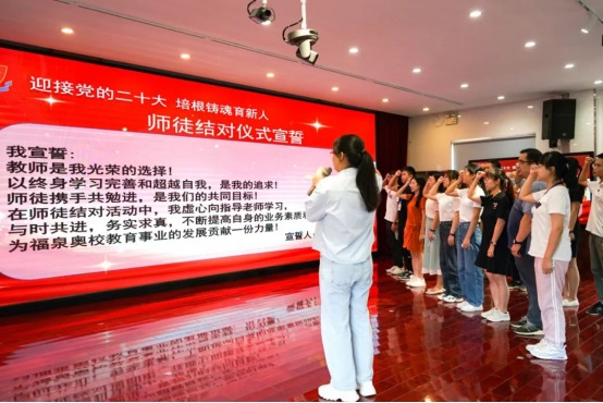 春風化雨潤花蕊,天高云淡桂花香。9月15日下午,福泉奧林匹克學校在四樓多功能室隆重舉行“迎接黨的二十大,培根鑄魂育新人”教師表彰大會暨師徒結(jié)對儀式,全體福泉人懷著奮進的豪情共同慶祝第38個教師節(jié)。