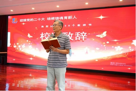 鐘明洋校長致辭,他向全體老師致以節(jié)日的問候,感謝老師們?yōu)閷W校發(fā)展的辛勤付出和貢獻。鐘校長表示上一學年,在全體師生的共同努力下,學校取得了驕人成績,各項數(shù)據(jù)持續(xù)領跑。同時,他進一步明確了學校未來發(fā)展的目標。福泉的教育生態(tài)正生機勃勃,要相信品牌的力量,相信福泉人的力量!