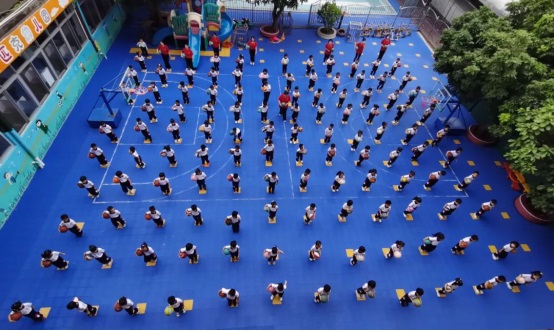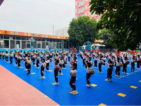看,小班級(jí)的徒手操,中班、大班的籃球操,孩子們?cè)趧?dòng)靜交替的運(yùn)動(dòng)中收獲自信快樂,獲得陽光成長!