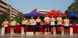 總裁判長黃海明老師宣布本屆優(yōu)秀運(yùn)動(dòng)員名單、各班團(tuán)體總分等獎(jiǎng)項(xiàng),并由學(xué)校領(lǐng)導(dǎo)為獲獎(jiǎng)班級(jí)和運(yùn)動(dòng)員進(jìn)行頒獎(jiǎng)。