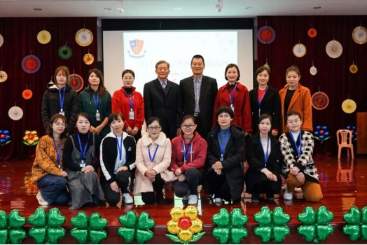 幼兒園行政人員及部分老師和陳董事長(zhǎng)、羅校長(zhǎng)合影